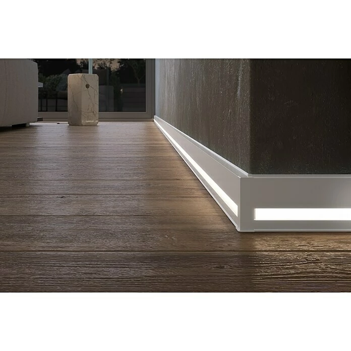 Das Deckprofil Cubica LS 80 Light Down ist das sichtbare Profil der kombinierten Licht-/Kabelkanalleiste passend für alle Bodenbelagsarten. Es besteht aus Polyblend auf Basis von PVC und verfügt über flexible Weichlippen oben und unten. Ob als Lichtakzent für Wohlfühlatmosphäre in den eigenen vier Wänden oder als Sicherheitslösung für Hotels, Schiffe oder Gesundheitseinrichtungen – das Cubica Light System ist die hochwertigste und flexibelste Lichtlösung am Markt. Hinweis: Das Grundprofil sowie das Starter-Set müssen separat bestellt werden.