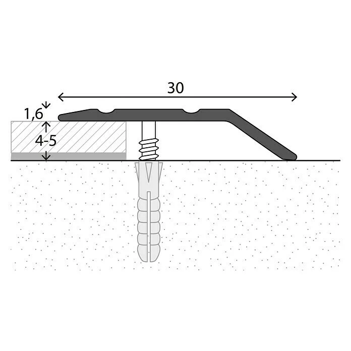 Das LOGOCLIC Abschlussprofil schützt die Belagskanten vor Beschädigungen und beseitigt Stolperkanten mit Hilfe des flachen Profilschenkels. Es eignet sich perfekt zum Abdecken von Nahtstellen verschiedener Bodenbeläge mit wenig Aufbauhöhe, wie zum Beispiel Teppich-, Vinylboden oder PVC. Benötigt wird das Aluminiumprofil etwa an Türübergängen. Es verfügt über versenkte Bohrungen, der Höhenausgleich beträgt 4 – 5 mm.