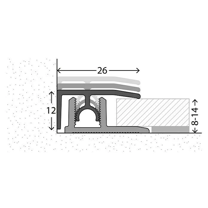 Das LOGOCLIC Abschlussprofil ist für Bodenbelagstärken von 8 – 14 mm konstruiert. Verdeckt befestigt bietet es eine perfekte Optik ohne Schraublöcher. Die flache Oberfläche ohne Zierrillen sorgt für zeitlose Eleganz. Die Montage ist besonders schnell und einfach. Zunächst wird das Basisprofil mit Montage- oder einem Zwei-Komponenten-Kleber auf dem Untergrund verklebt. Alternativ kann das Basisprofil auch verschraubt werden. Mit dem bogenverzahnten Gelenksteg rastet das Oberprofil im Basisprofil ein und passt sich automatisch dem Bodenbelag an – variabel in Höhe und Neigung. Auch bei stärkeren Niveauunterschieden liegt das Profil an beiden Seiten dicht an. Gleichzeitig erlaubt die Bogenverzahnung die problemlose Demontage. Das Oberprofil kann bei Bedarf gelöst und anschließend wieder im Basisprofil verankert werden. Die Profile wurden vom deutschen TÜV auf eine Punktbelastbarkeit von 1,5 Tonnen getestet. Hinweis: Passender Klebstoff oder Montagematerial ist separat zu erwerben.