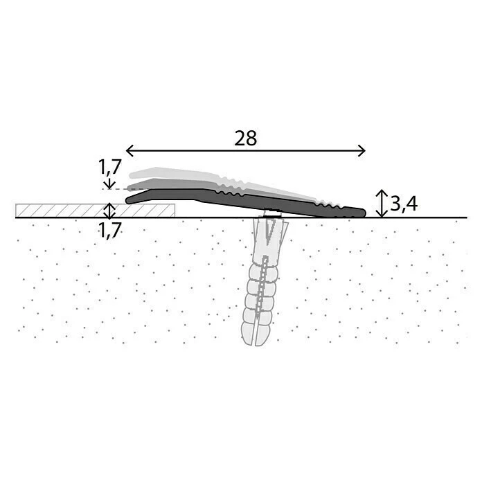 Das LOGOCLIC Rampenprofil schützt die Kanten des Bodenbelags vor Beschädigungen. Es bildet einen flachen Auslauf, so werden Stolperkanten vermieden. Das Aluminium-Rampenprofil ist für Bodenbelagstärken von 2 – 5 mm geeignet und verfügt über versenkte Schraublöcher.
