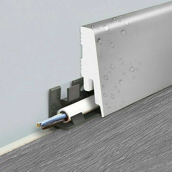 Die LOGOCLIC Sockelleiste K58 C ist eine hochwertige, moderne und geradlinige Abschlussleiste aus Kunststoff für die perfekte Bodengestaltung passend zum jeweiligen Element Hartvinylboden. Die benötigte Dehnungsfuge zur Wand wird optimal überdeckt und das Bodendesign konsequent fortgeführt. Das Ziel ist ein rundum harmonisches Bild bis hin zum Wandabschluss. Separat erhältliche Montageclips garantieren eine einfache Anbringung und lassen eine versteckte Kabelverlegung zu.