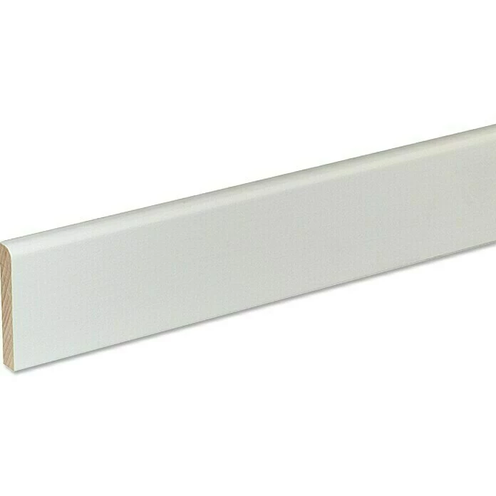 Die Massivleiste ist aus robustem Hartholz gefertigt. Sie ist bereits fertig lackiert und dient als stabile Sockelleiste zum Überdecken der Dehnungsfuge zwischen Boden und Wand.