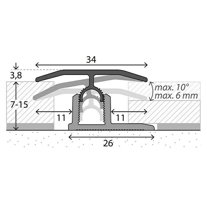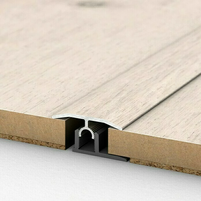 Das MyStyle Universalprofil ist für die Verlegung von Laminatböden mit einer Belagstärke von 7 – 15 mm geeignet. Verdeckt befestigt bietet es eine perfekte Optik ohne Schraublöcher. Die flache Oberfläche ohne Zierrillen sorgt für zeitlose Eleganz. Die Montage ist besonders schnell und einfach. Zunächst wird das Basisprofil mit Montage- oder einem Zwei-Komponenten-Kleber auf dem Untergrund verklebt. Alternativ kann das Basisprofil auch verschraubt werden. Mit dem bogenverzahnten Gelenksteg rastet das Oberprofil im Basisprofil ein und passt sich automatisch dem Bodenbelag an – variabel in Höhe und Neigung. Auch bei starken Niveauunterschieden liegt das Profil an beiden Seiten dicht an. Gleichzeitig erlaubt die Bogenverzahnung die problemlose Demontage. Das Oberprofil kann bei Bedarf gelöst und anschließend wieder im Basisprofil verankert werden. Die Profile wurden vom deutschen TÜV auf eine Punktbelastbarkeit von 1,5 Tonnen getestet. Hinweis: Passender Klebstoff oder Montagematerial ist separat zu erwerben.