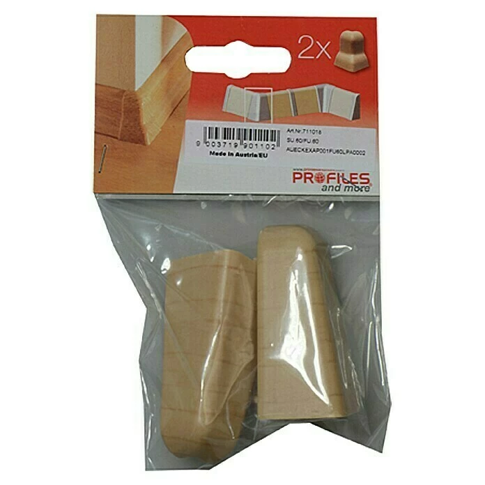 Die Außenecke von Profiles and more besteht aus hochwertigem Kunststoff und erleichtert die Sockelleistenmontage. Die Ecke wird einfach zwischen die Enden der rechtwinkelig geschnittenen Leisten gesteckt. Dadurch ist kein komplizierter Gehrungsschnitt mehr notwendig und die Leistenecke ist gegen Stöße geschützt.