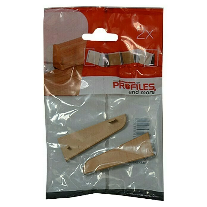 Die Endkappe von Profiles and more besteht aus hochwertigem Kunststoff und erleichtert die Sockelleistenmontage. Sie wird einfach auf das Ende der rechtwinkelig geschnittenen Leiste gesteckt und sorgt somit für einen optisch ansprechenden Abschluss der Leiste. Das Trägermaterial der Formleiste wird somit völlig von der Endkappe verdeckt und ist optimal gegen Stöße geschützt.