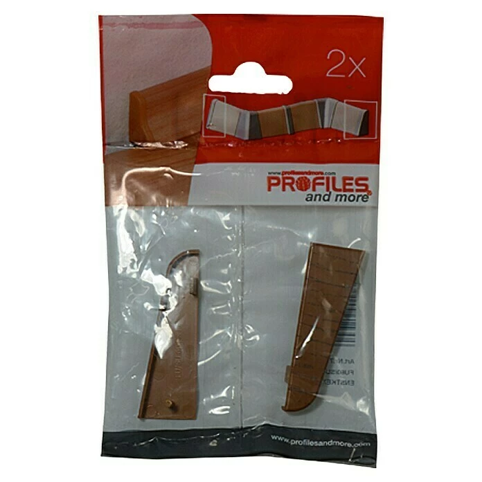 Die Endkappe von Profiles and more besteht aus hochwertigem Kunststoff und erleichtert die Sockelleistenmontage. Sie wird einfach auf das Ende der rechtwinkelig geschnittenen Leiste gesteckt und sorgt somit für einen optisch ansprechenden Abschluss der Leiste. Das Trägermaterial der Formleiste wird somit völlig von der Endkappe verdeckt und ist optimal gegen Stöße geschützt.