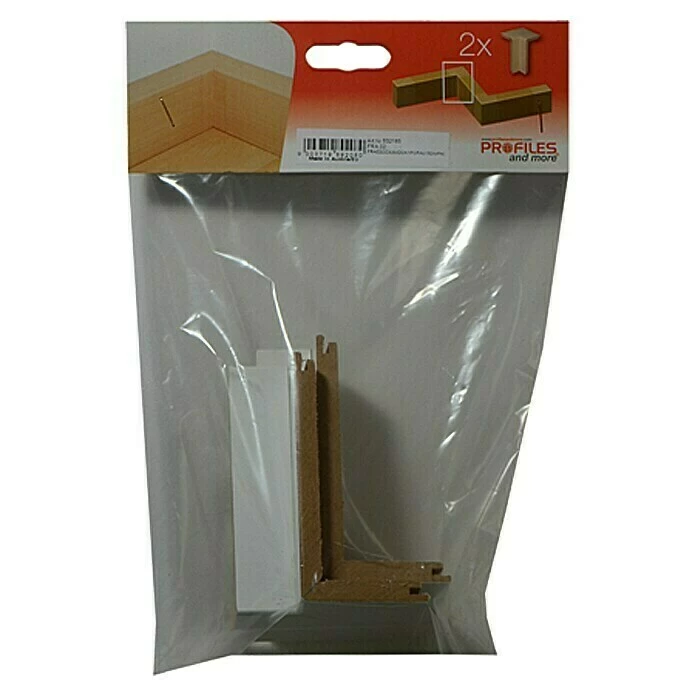 Die Innenecke von Profiles and more ist aus bereits auf Gehrung zugeschnittenen Leistenstücken gefertigt. Sie erleichtert die Montage von Rohrabdeckleisten und erspart den komplizierten Gehrungsschnitt.