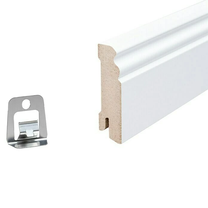 Diese weiße Sockelleiste mit altdeutschem Profil ist aus äußerst robustem MDF gefertigt. Für Qualitätsbewusste ist sie damit eine sehr gute Alternative zu Vollholz. Mit ihrer klassischen Form veredelt sie den Übergang zwischen Boden und Wand und verleiht diesem besonders in Altbauten einen stilechten Charakter. Darüber hinaus passt sie zu einer Vielzahl von Einrichtungsstilen. Durch ihre Clip-Nut ist sie besonders montagefreundlich.